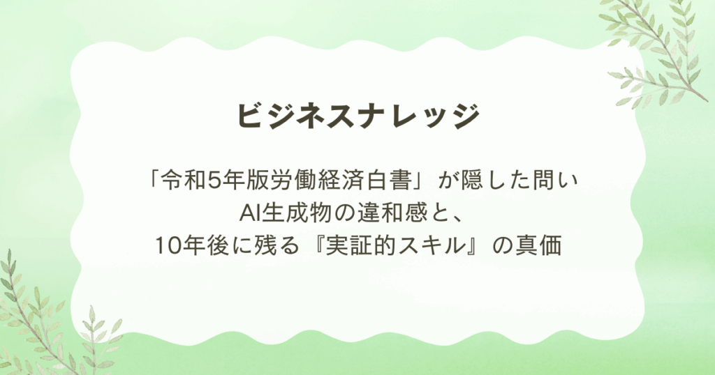「令和5年版労働経済白書」が隠した問い――AI生成物の違和感と、10年後に残る『実証的スキル』の真価