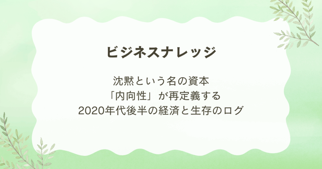 沈黙という名の資本 ―― 「内向性」が再定義する2020年代後半の経済と生存のログ